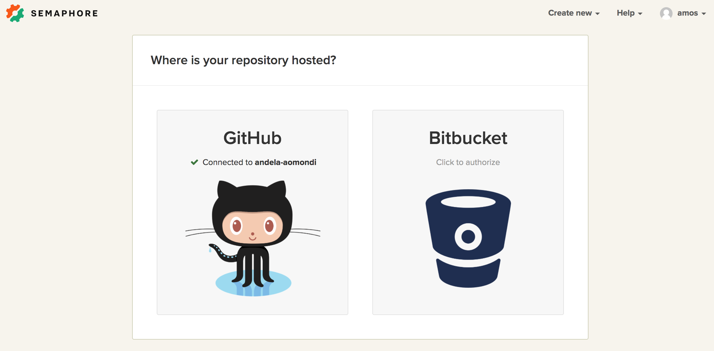 - If you’ve connected both GitHub and Bitbucket, you’ll see a screen where you should select the account where the code is hosted.