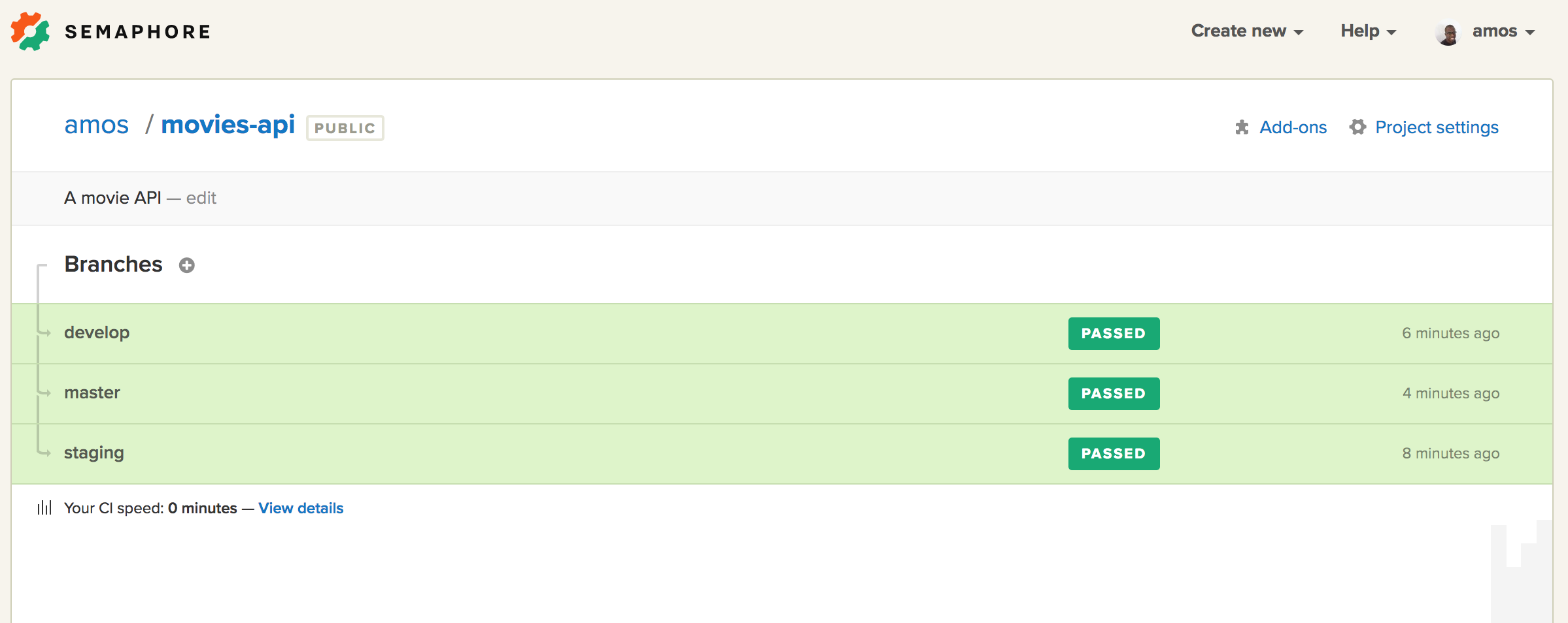 You’ll also need to have Github, Semaphore, and Heroku accounts.
