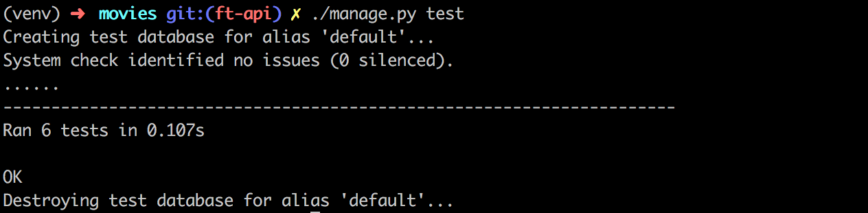 You can also run ./manage.py runserver and point your browser to http://localhost/8000/api/v1/movies to play with Django Rest Framework’s web browsable API.